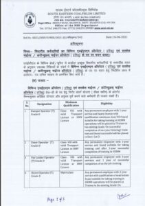 रायपुर: नौकरी की तलाश कर रहे युवाओं के लिए सरकारी नौकरी पाने का सुनहरा अवसर आया है। दरअसल कोल इंडिया की संस्थान एसईसीएल ने अलग-अलग 400 से अधिक पदों पर भर्ती के लिए नोटिफिकेशन जारी किया है। एसईसीएल की ओर से जारी इस भर्ती में 8वीं/ 10वीं/ 12वीं पास युवा आवेदन कर सकते हैं, जिसकी अंतिम तिथि 7 जुलाई 2021 तय की गई है।